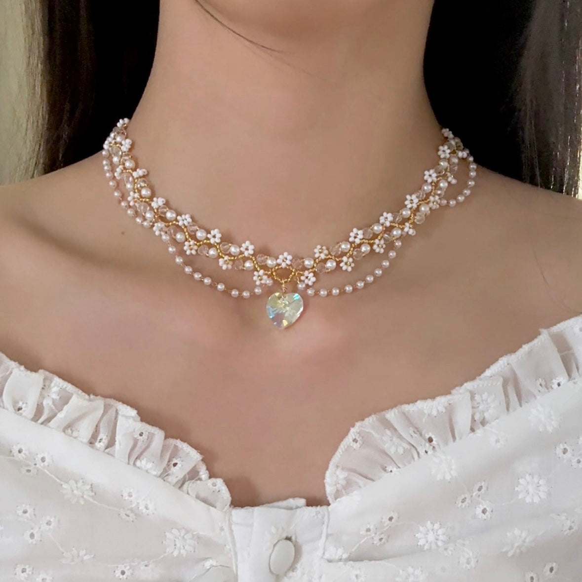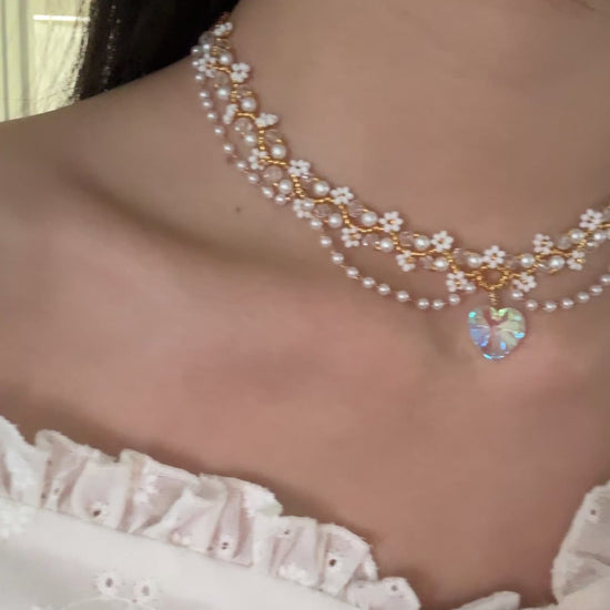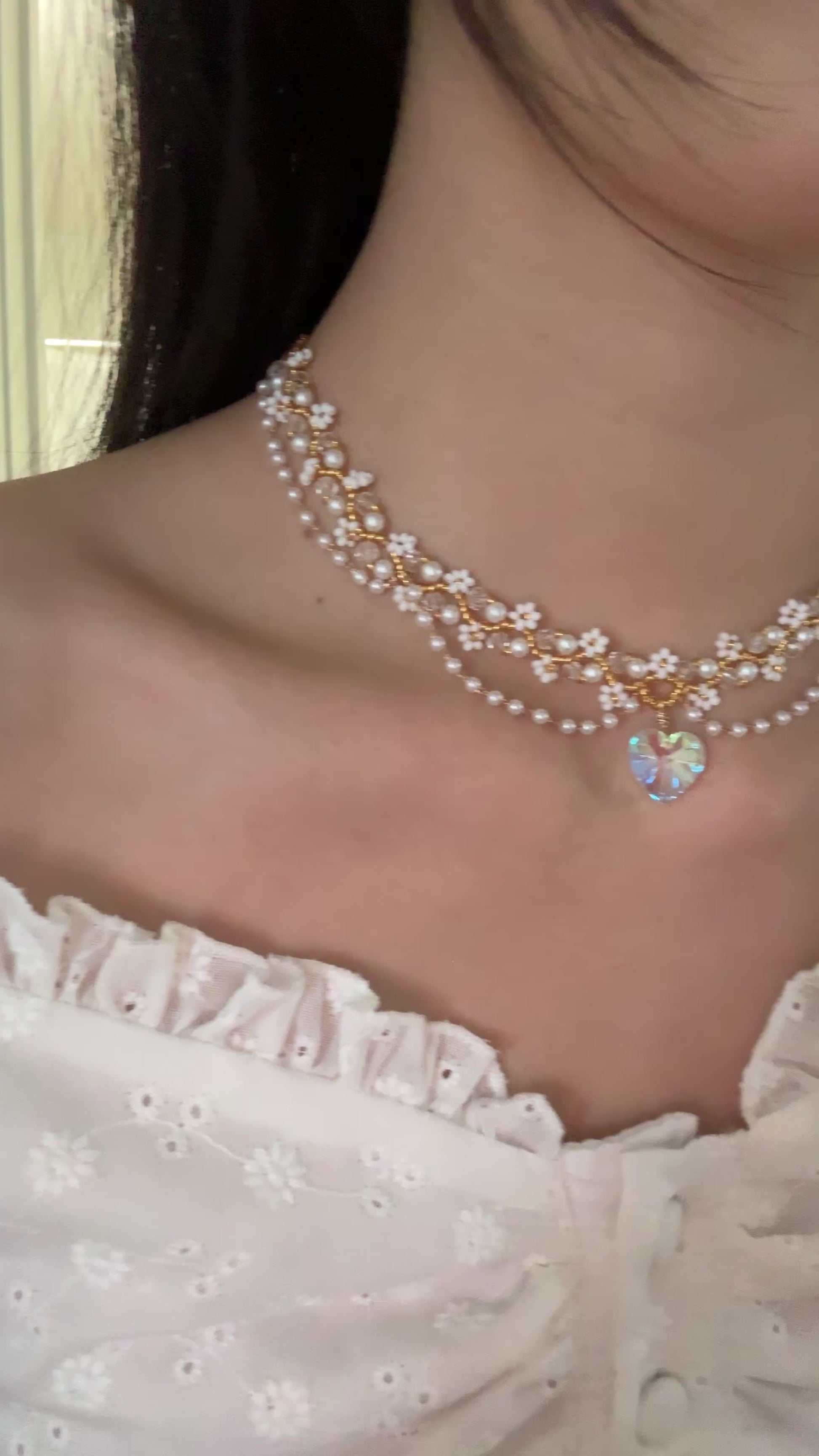 Materials: stainless steel clasp and chain, Swarovski heart pendant, miyuki seed beads.