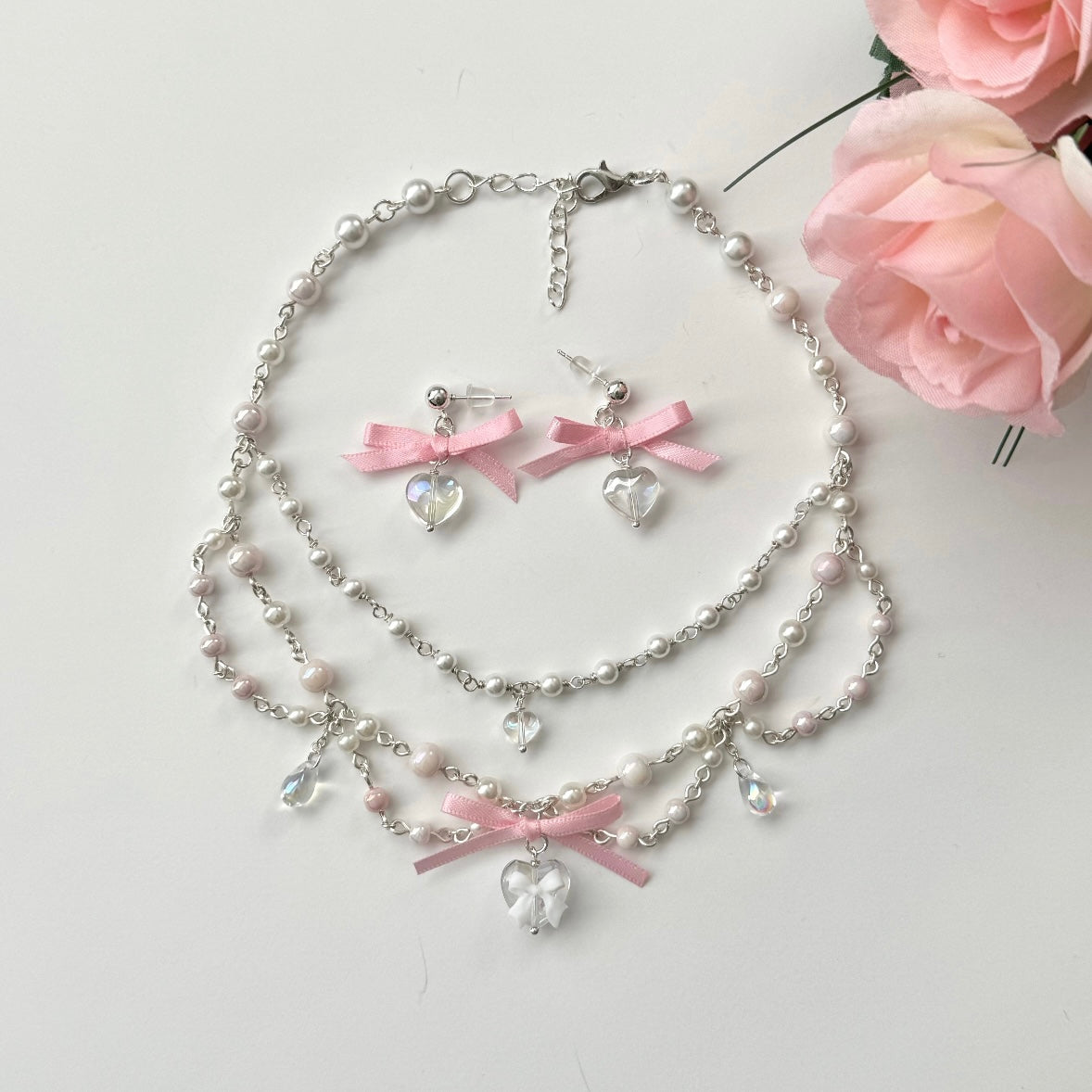 Coquette dollettecore inspired necklace & earring set! Imagine wearing this on a picnic with your cute fluffy dress!!